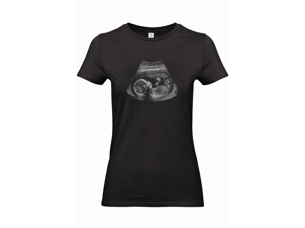 Na hrudi sa nachádza realistický ultrazvukový záber bábätka v brušku – presne ten magický moment, kedy si si prvýkrát povedala: